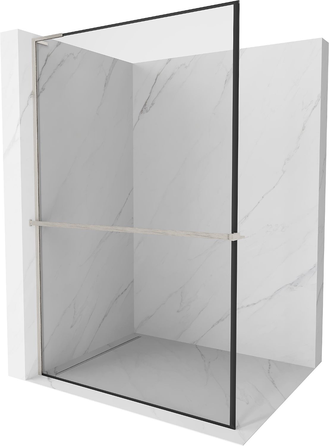 Mexen Kioto+ L sprchová stěna s poličkou Walk-in 90 x 200 cm, černý rámeček, kartáčovaný nikl - 800-090-123-97-70