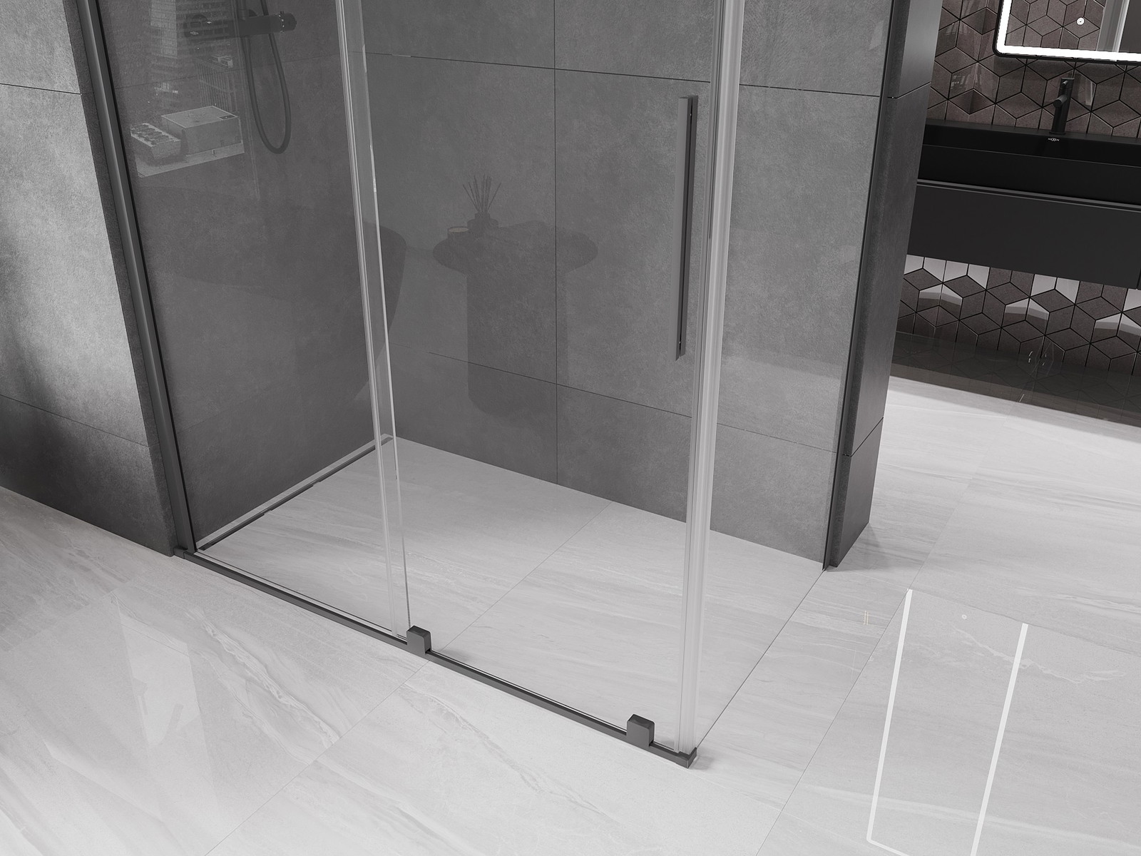 Mexen Velar posuvný sprchový kout 140 x 70 cm, transparentní, gun metal - 871-140-070-01-95