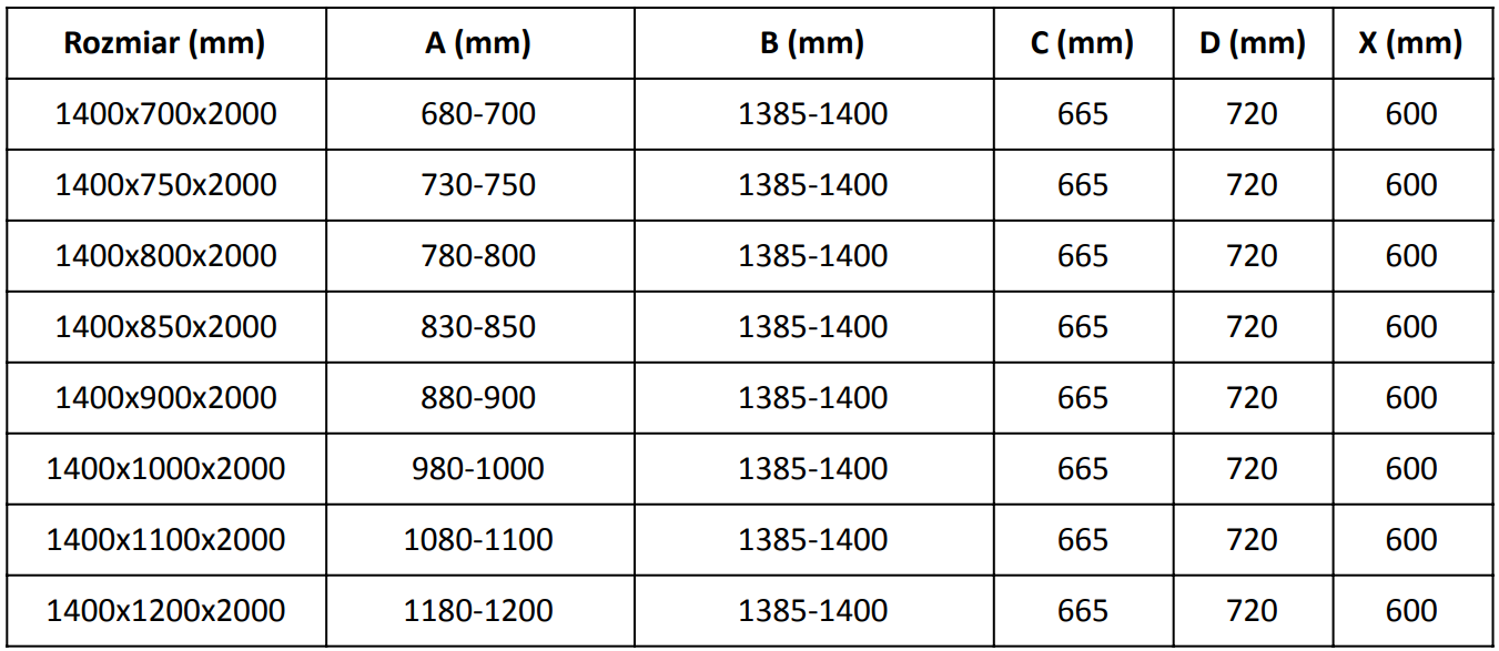 Velikost: 140x80 cm (dveře 140 cm, stěna 80 cm)