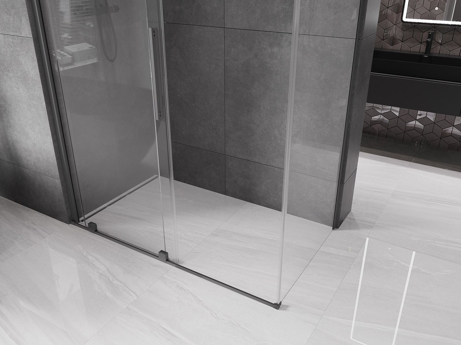 Mexen Velar posuvný sprchový kout 140 x 80 cm, transparentní, gun metal - 871-140-080-01-95