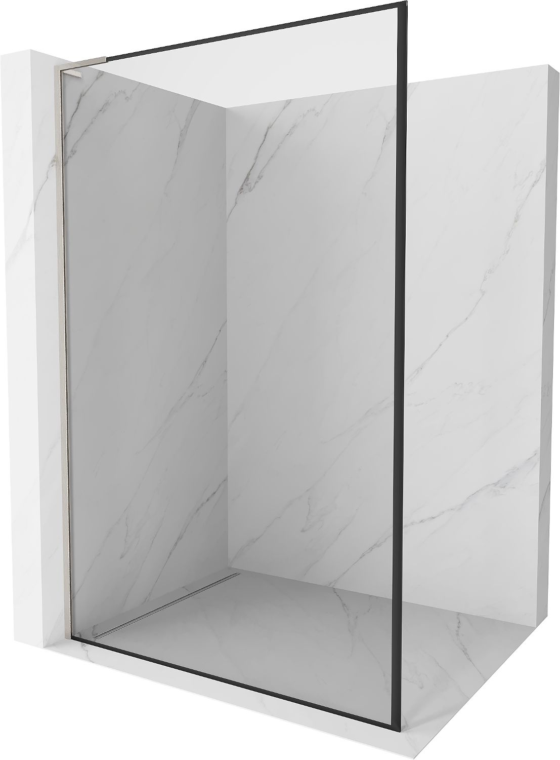 Mexen Kioto L sprchová stěna Walk-in 120 x 200 cm, černý rám, kartáčovaný nikl - 800-120-103-97-70
