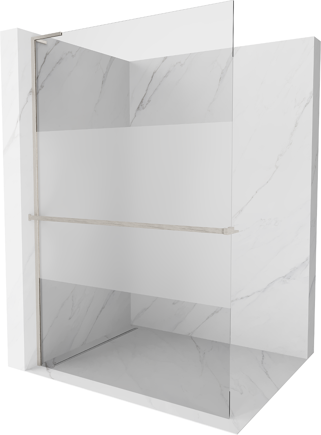 Mexen Kioto+ L sprchová stěna s poličkou Walk-in 110 x 200 cm, transparentní/mléčná, kartáčovaný nikl - 800-110-123-97-35