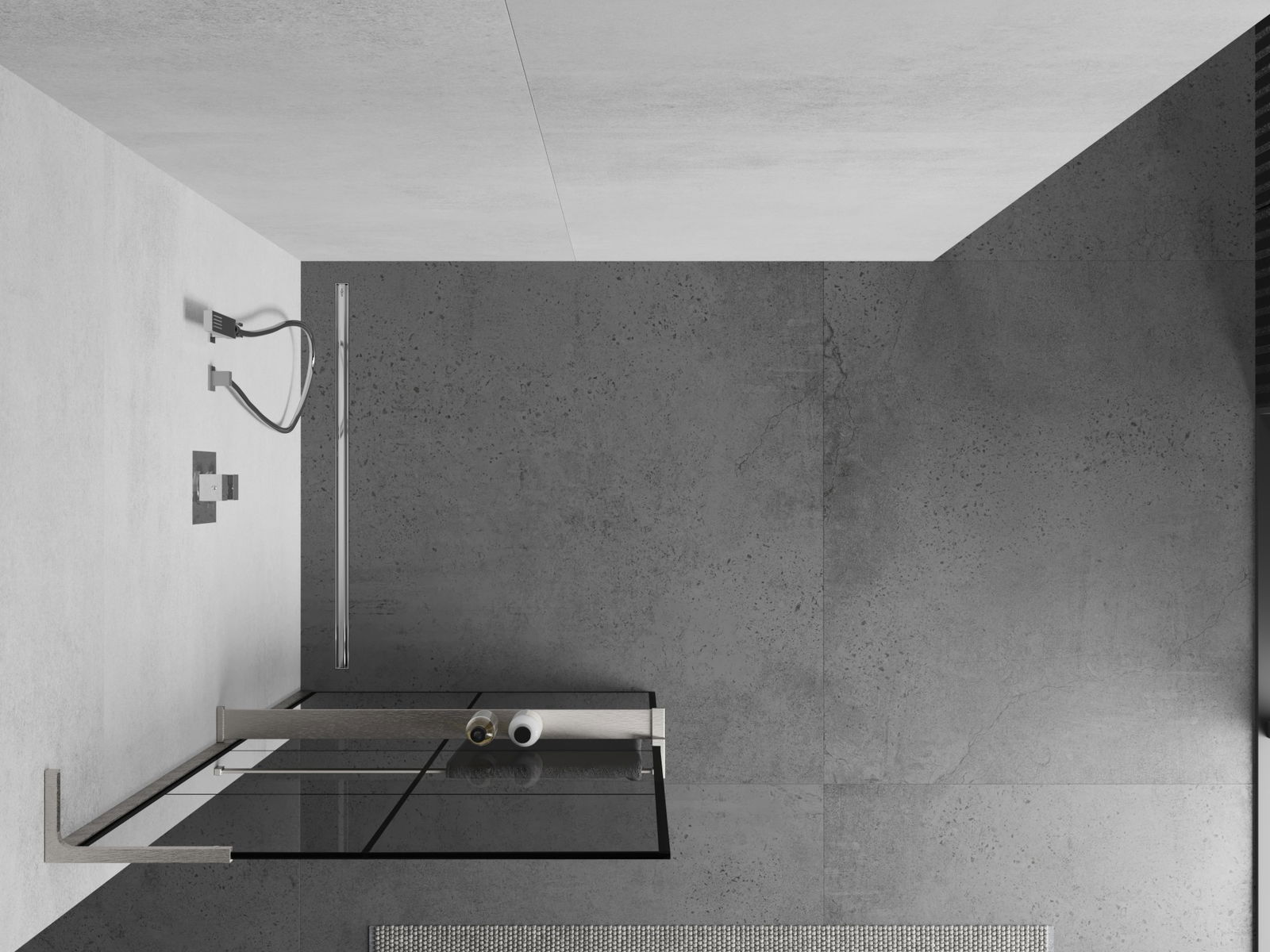 Mexen Kioto+ L sprchová stěna s poličkou Walk-in 70 x 200 cm, černá mřížka, kartáčovaný nikl - 800-070-123-97-77