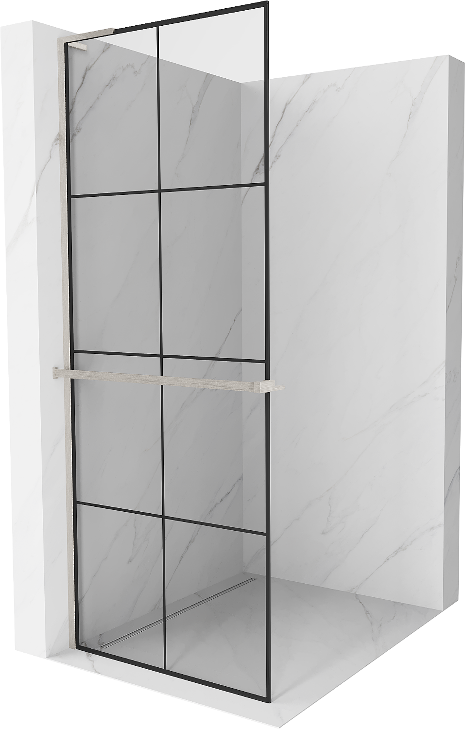 Mexen Kioto+ L sprchová stěna s policí Walk-in 90 x 200 cm, černá mřížka, kartáčovaný nikl - 800-090-123-97-77