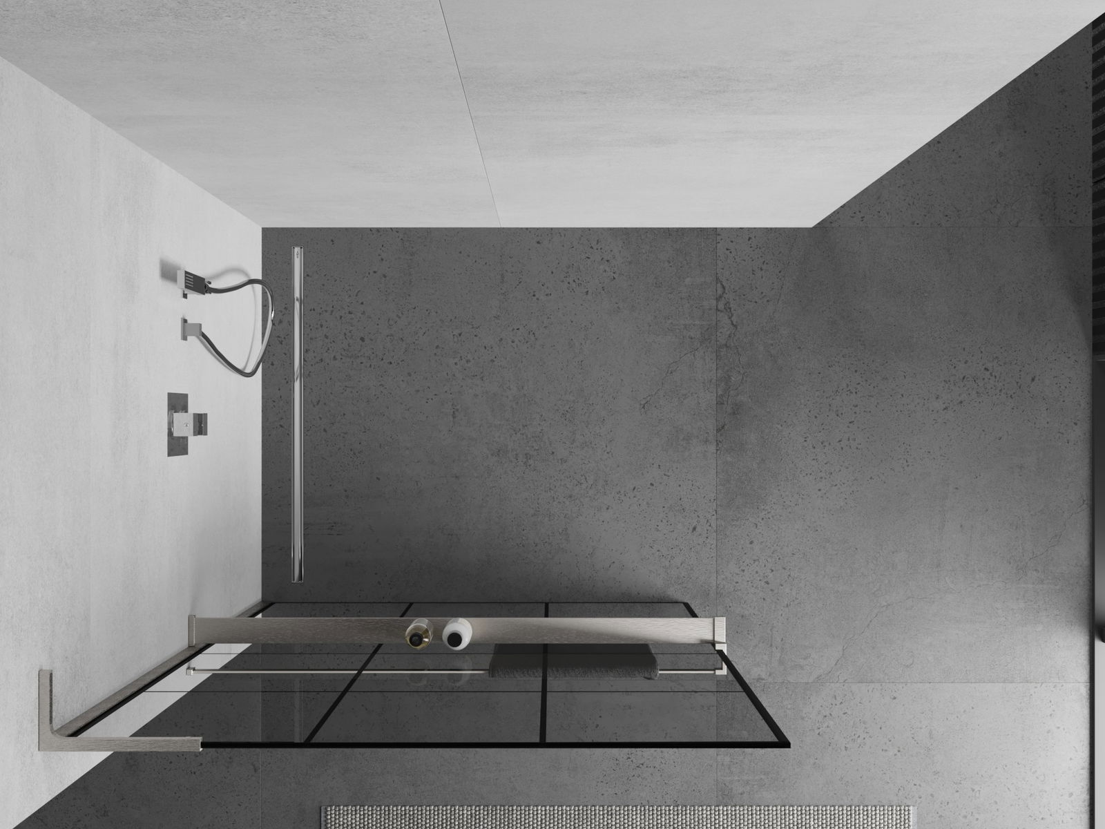 Mexen Kioto+ L sprchová stěna s policí Walk-in 110 x 200 cm, černá mřížka, kartáčovaný nikl - 800-110-123-97-77
