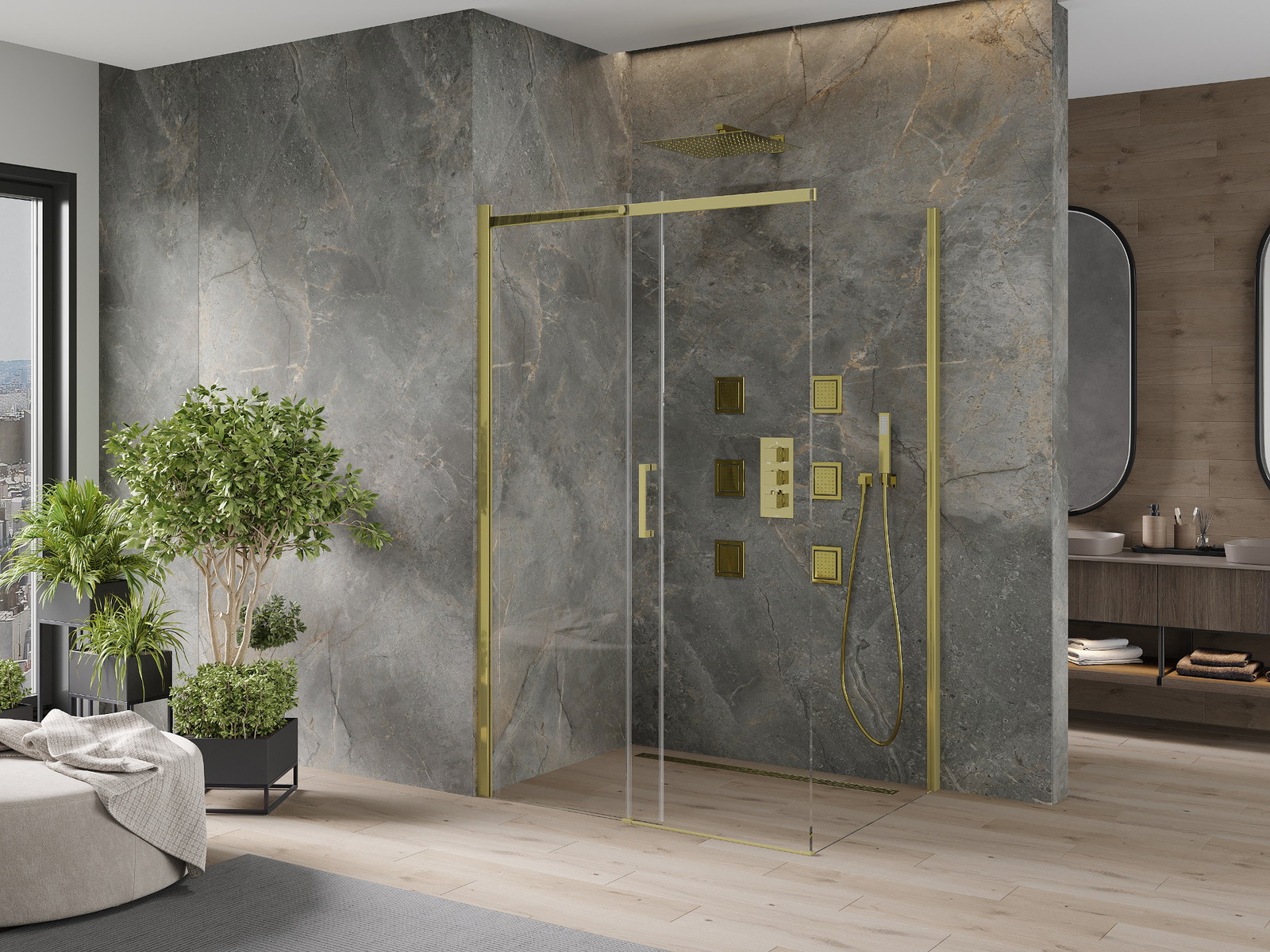 Mexen Omega posuvná sprchová kabina 100 x 70 cm, transparentní, zlatá - 825-100-070-50-00
