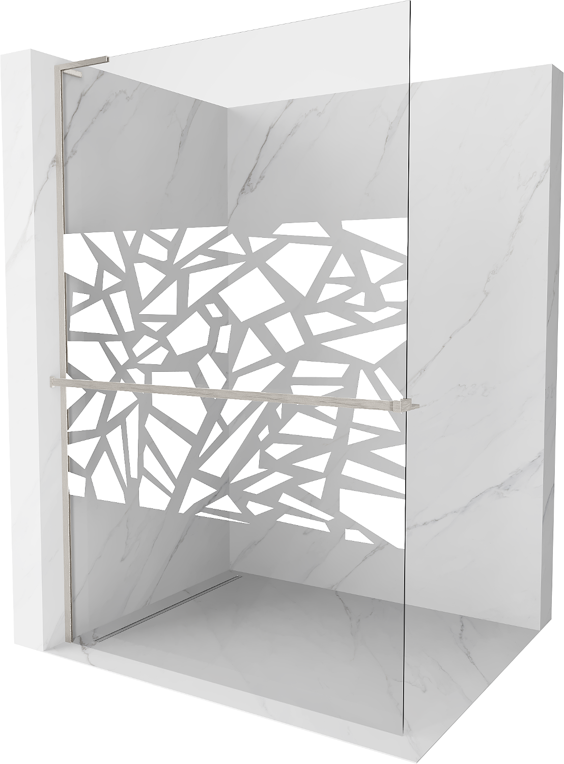 Mexen Kioto+ L sprchová stěna s policí Walk-in 80 x 200 cm, bílý vzor, kartáčovaný nikl - 800-080-123-97-85