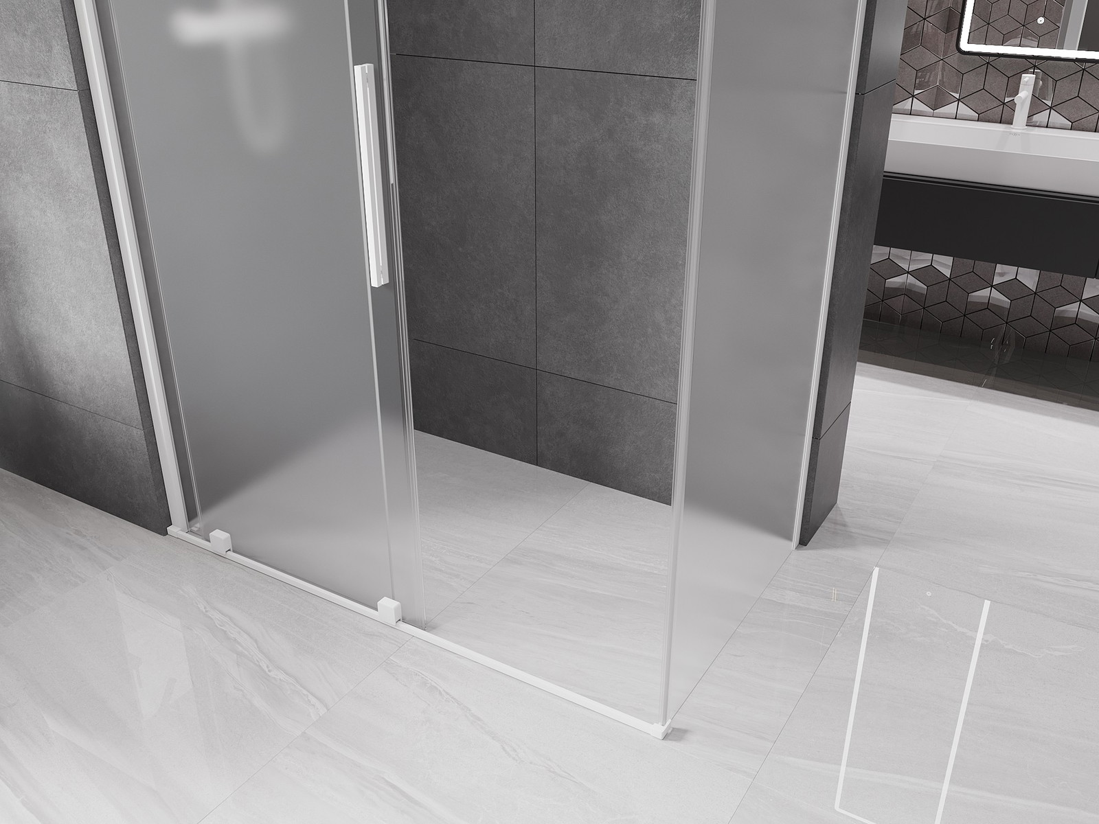 Mexen Velar posuvná sprchová kabina 160 x 90 cm, matné sklo, bílá - 871-160-090-31-20