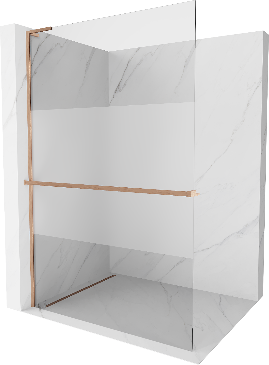 Mexen Kioto+ L sprchová stěna s poličkou Walk-in 80 x 200 cm, transparentní/matná, kartáčovaná měď - 800-080-123-65-35