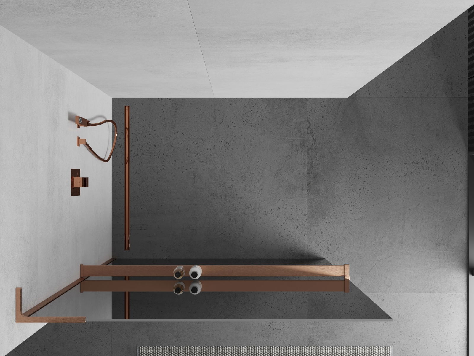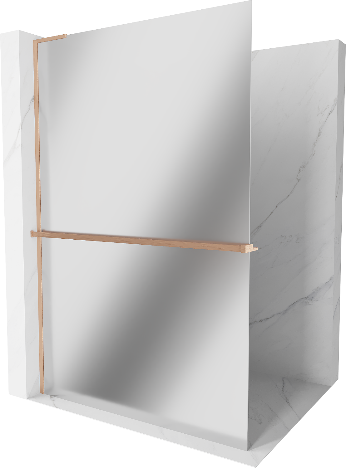 Mexen Kioto+ L sprchová stěna s poličkou Walk-in 100 x 200 cm, zrcadlo, kartáčovaná měď - 800-100-123-65-50