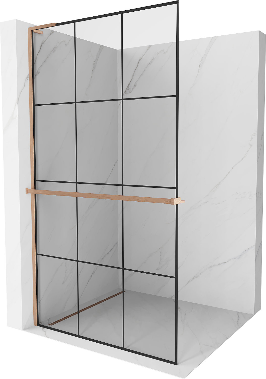 Mexen Kioto+ L sprchová stěna s policí Walk-in 120 x 200 cm, černá mřížka, kartáčovaná měď - 800-120-123-65-77