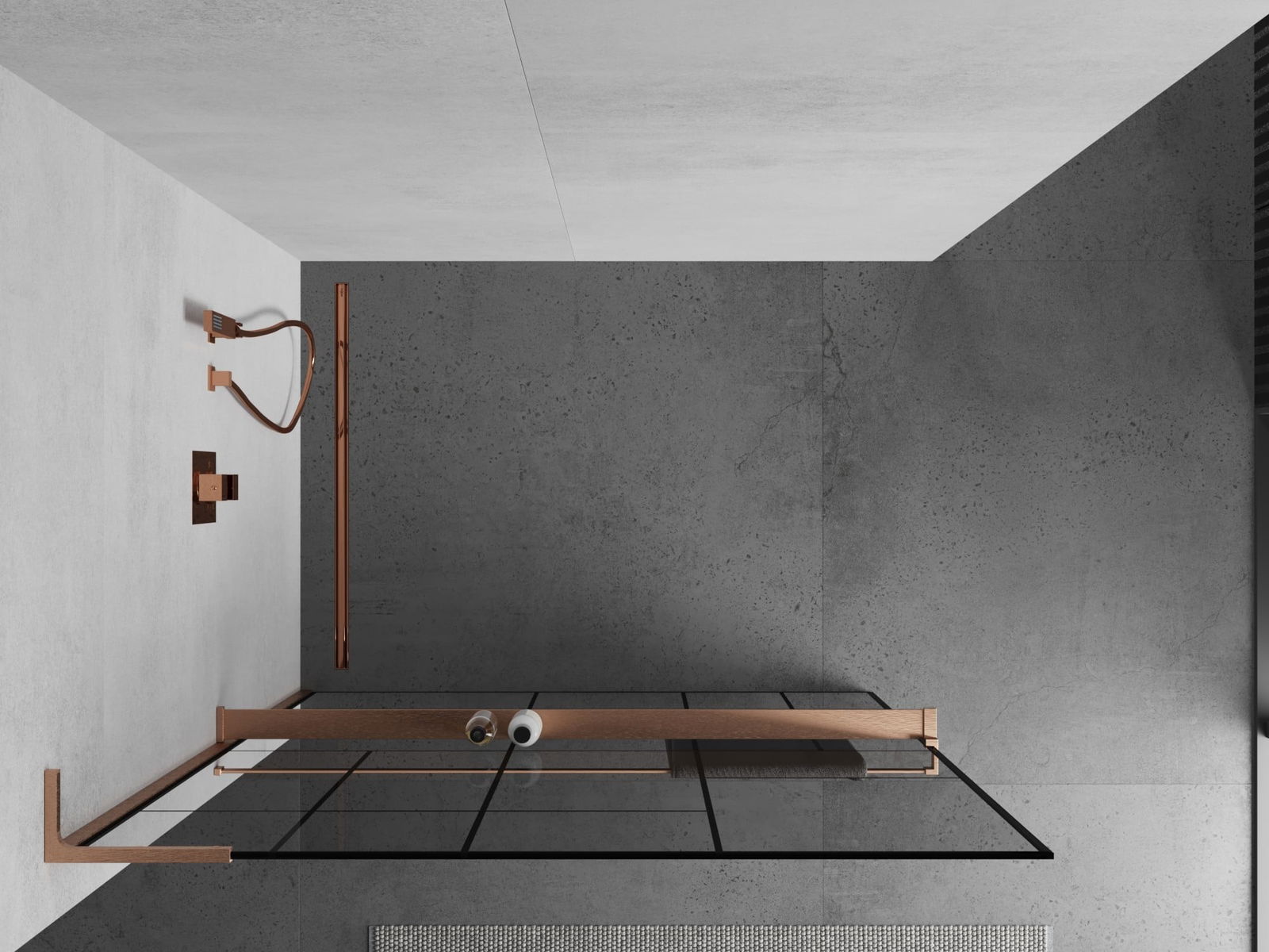 Mexen Kioto+ L sprchová zástěna s policí Walk-in 110 x 200 cm, černý vzor, kartáčovaná měď - 800-110-123-65-78