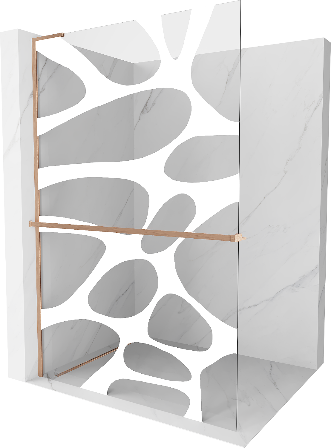 Mexen Kioto+ L sprchová stěna s policí Walk-in 80 x 200 cm, bílá vlna, kartáčovaná měď - 800-080-123-65-97