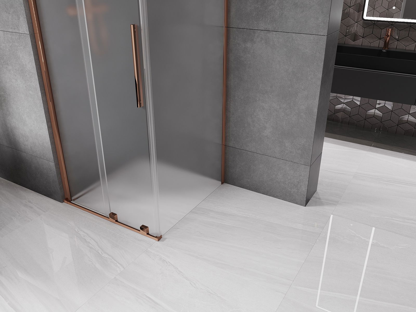 Mexen Velar posuvná sprchová kabina 120 x 120 cm, matná, růžové zlato - 871-120-120-31-60