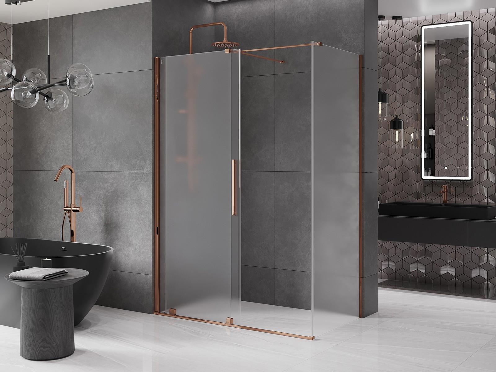 Mexen Velar posuvná sprchová kabina 150 x 75 cm, matné sklo, růžové zlato - 871-150-075-31-60