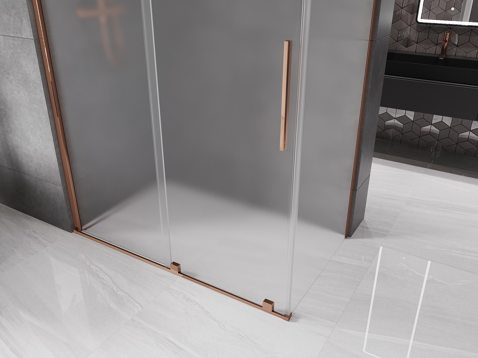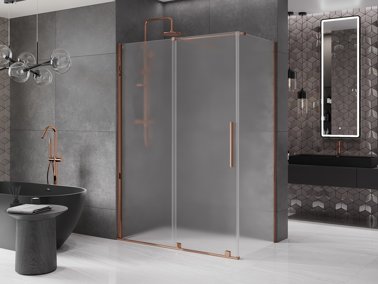 Mexen Velar sprchový kout posuvný 150 x 85 cm, matné sklo, růžové zlato - 871-150-085-31-60