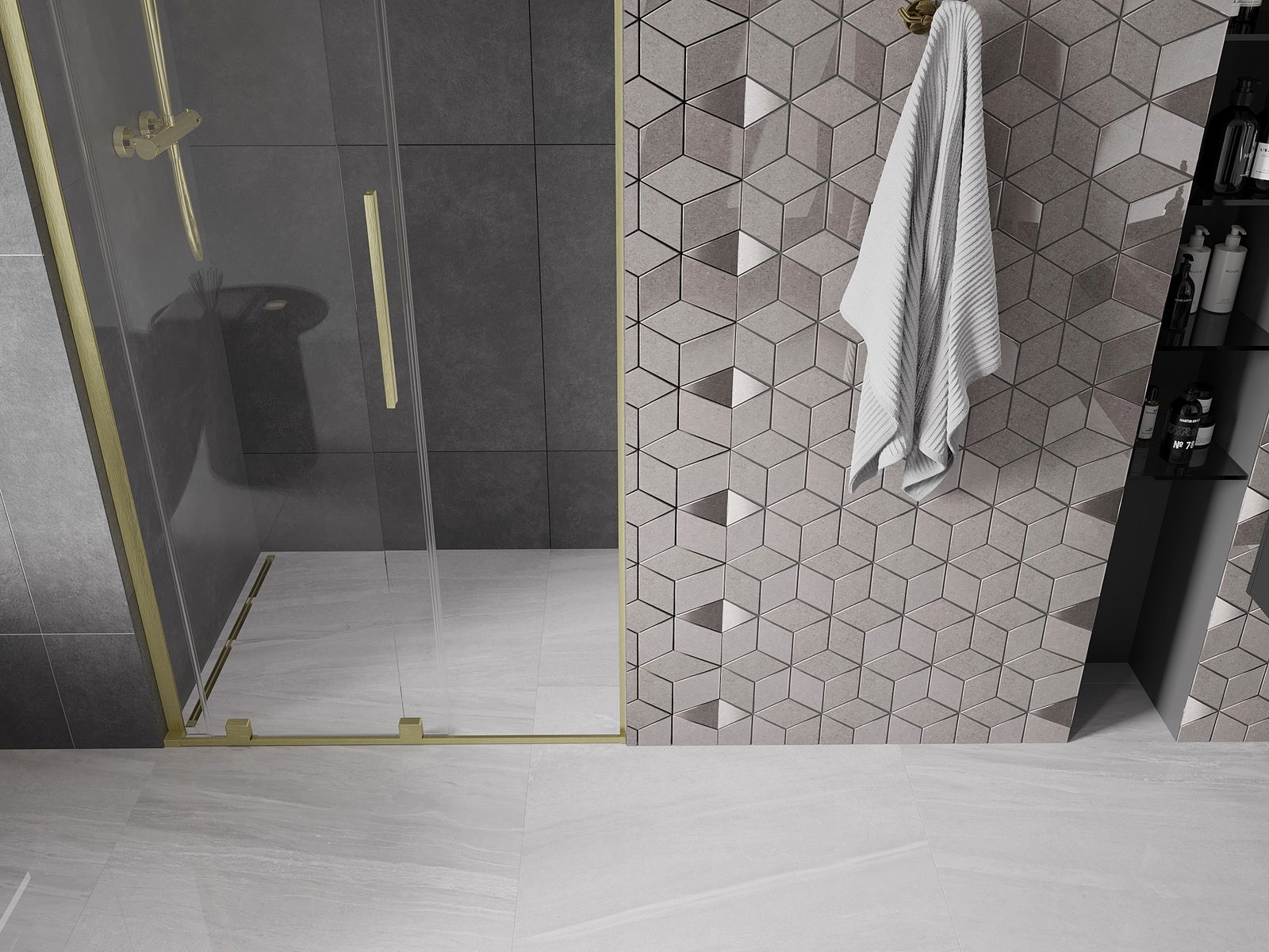 Mexen Velar L posuvné sprchové dveře 120 cm, průhledné, zlaté kartáčované - 871-120-003-01-55