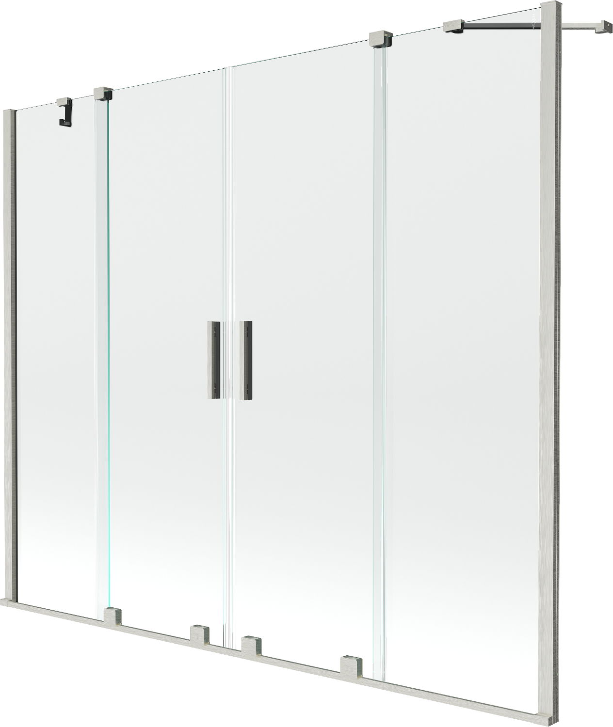 Mexen Velar Duo paraván na vanu, 2-křídlový, posuvný 170 x 150 cm, transparentní, kartáčovaný nikl - 896-170-000-02-97