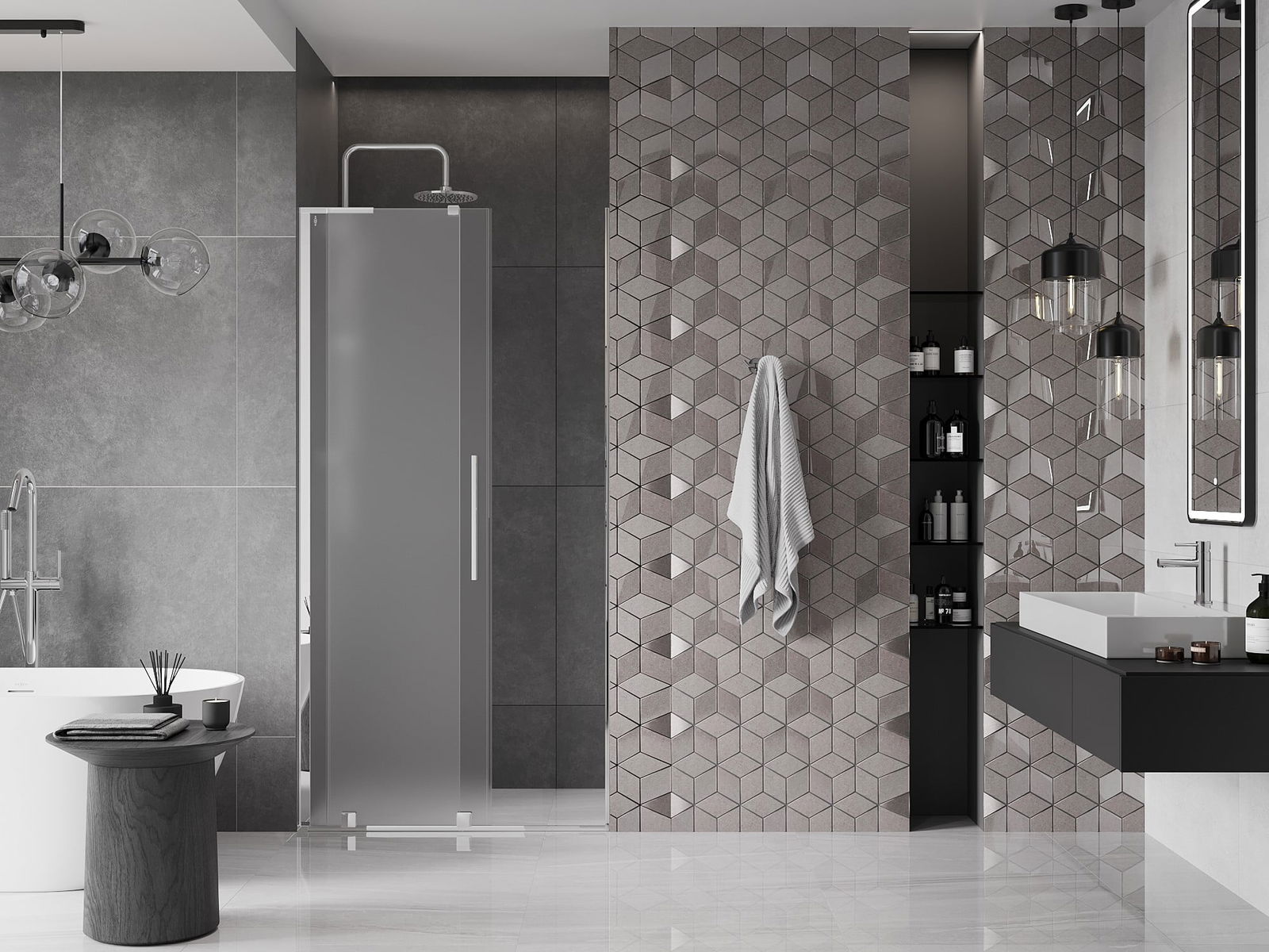 Praktický a pohodlný držák je vyroben z nerezové oceli. Moderní tvar ve spojení s povrchovou úpravou sladěnou s barvou profilů dodává celku moderní a stylový vzhled, zdůrazňující estetiku každé koupelny.
