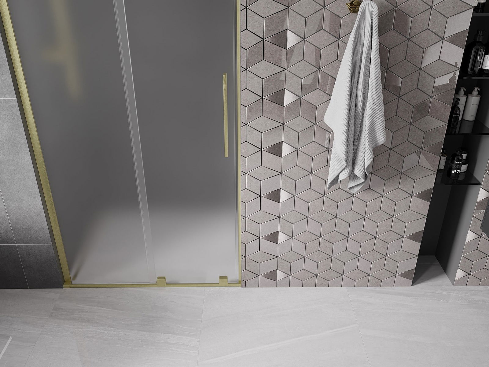 Mexen Velar L posuvné sprchové dveře 120 cm, matné, zlaté kartáčované - 871-120-003-31-55