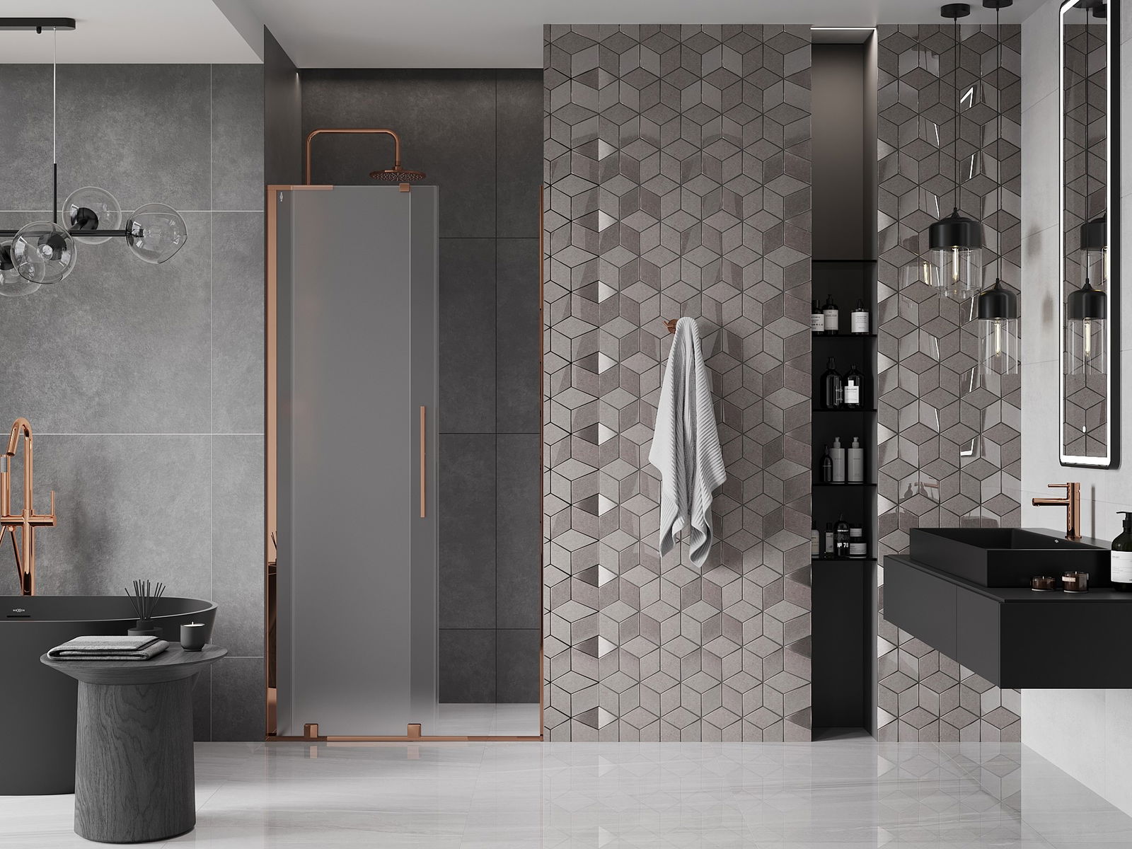 Mexen Velar L sprchové dveře posuvné 120 cm, mrazivý, růžové zlato - 871-120-003-31-60