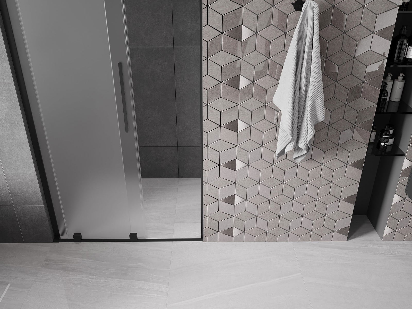 Praktický a pohodlný držák je vyroben z nerezové oceli. Moderní tvar ve spojení s povrchovou úpravou sladěnou s barvou profilů dodává celku moderní a stylový vzhled, zdůrazňující estetiku každé koupelny.