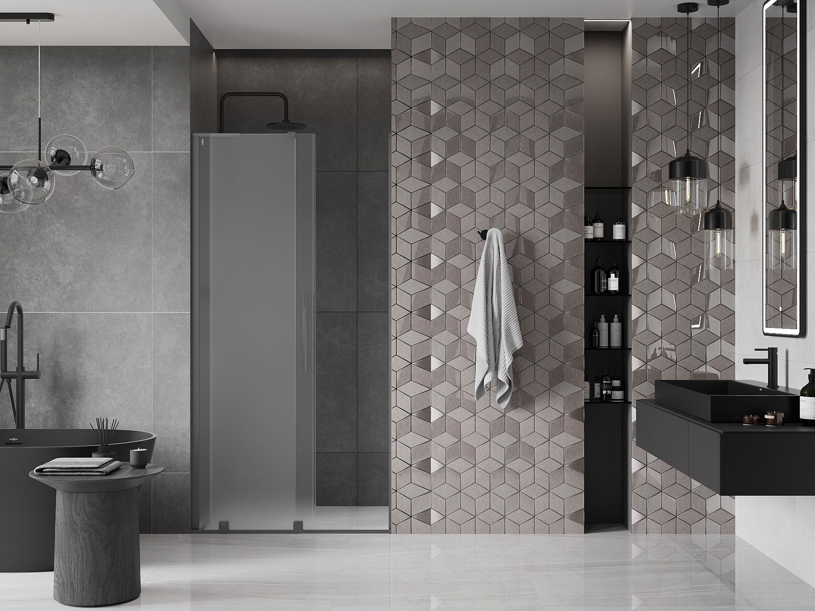 Praktický a pohodlný držák je vyroben z nerezové oceli. Moderní tvar ve spojení s povrchovou úpravou sladěnou s barvou profilů dodává celku moderní a stylový vzhled, zdůrazňující estetiku každé koupelny.
