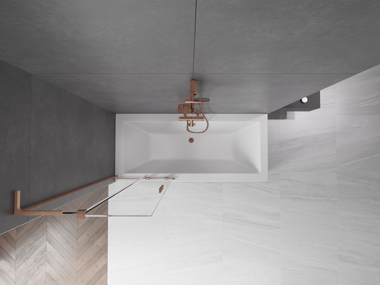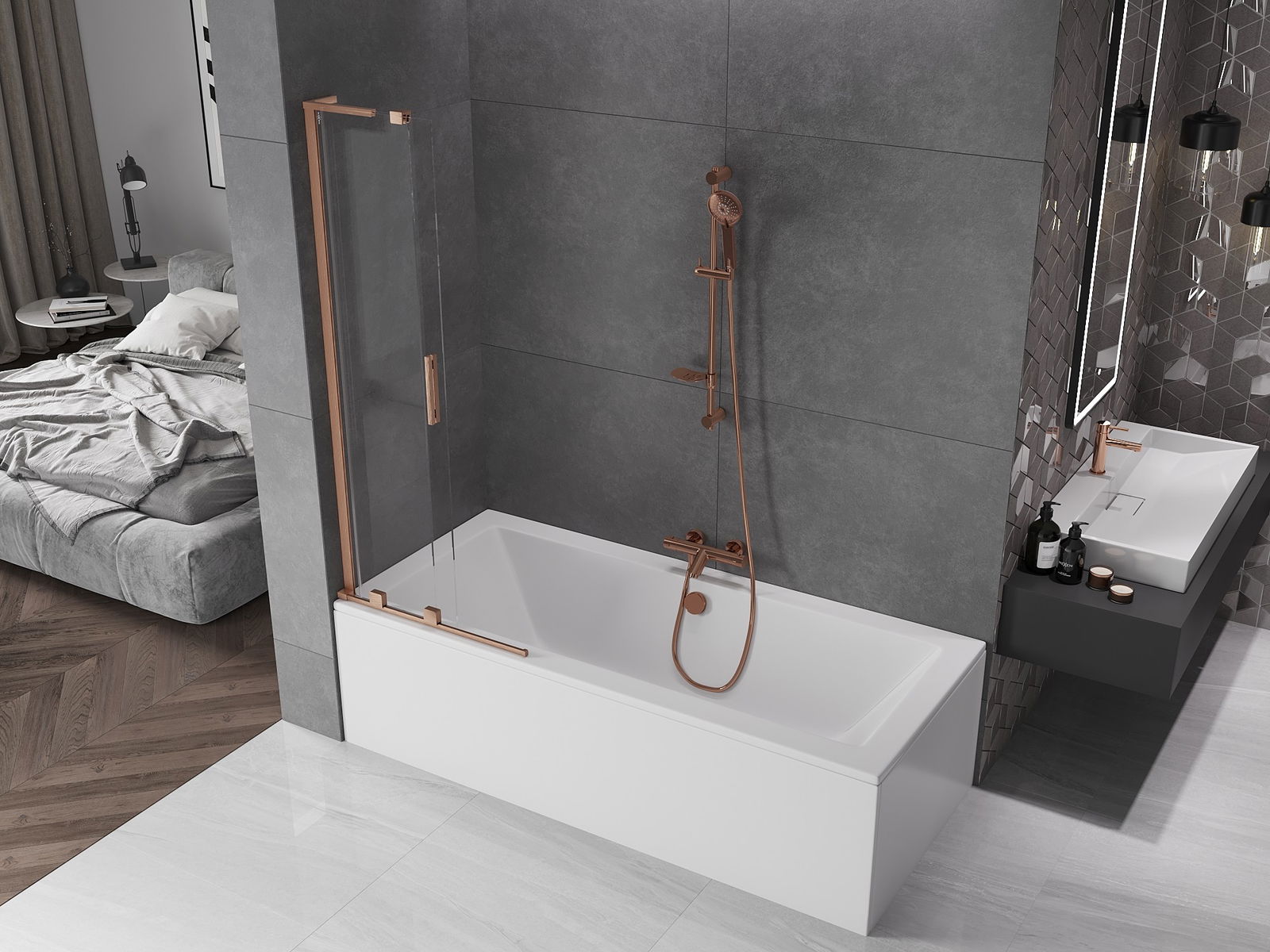 Mexen Velar L vanová zástěna dvoukřídlá posuvná 70 x 150 cm, transparentní, kartáčovaná měď - 896-070-003-01-65