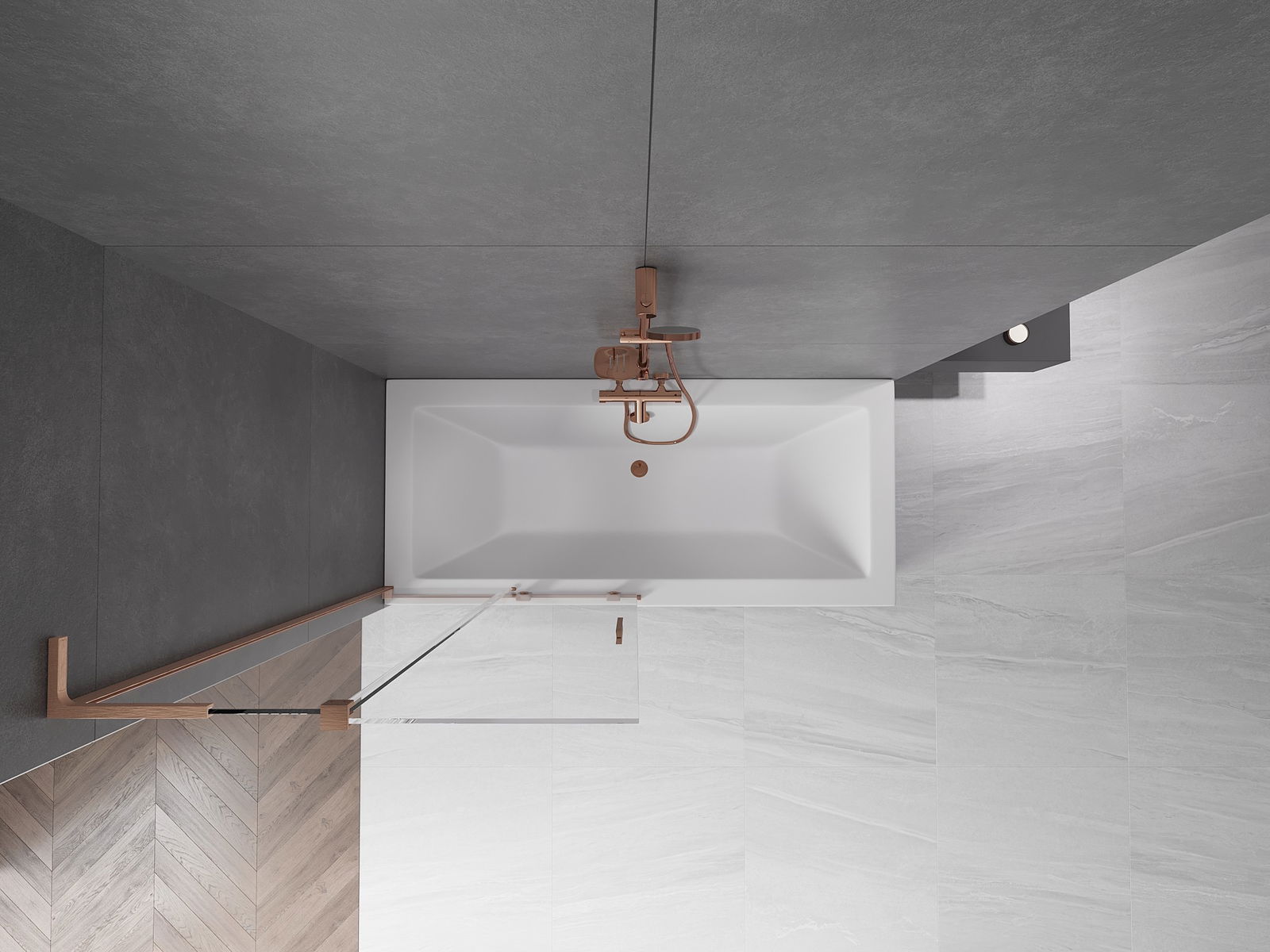 Mexen Velar L vanová zástěna 2-křídlová posuvná 95 x 150 cm, transparentní, kartáčovaná měď - 896-095-003-01-65