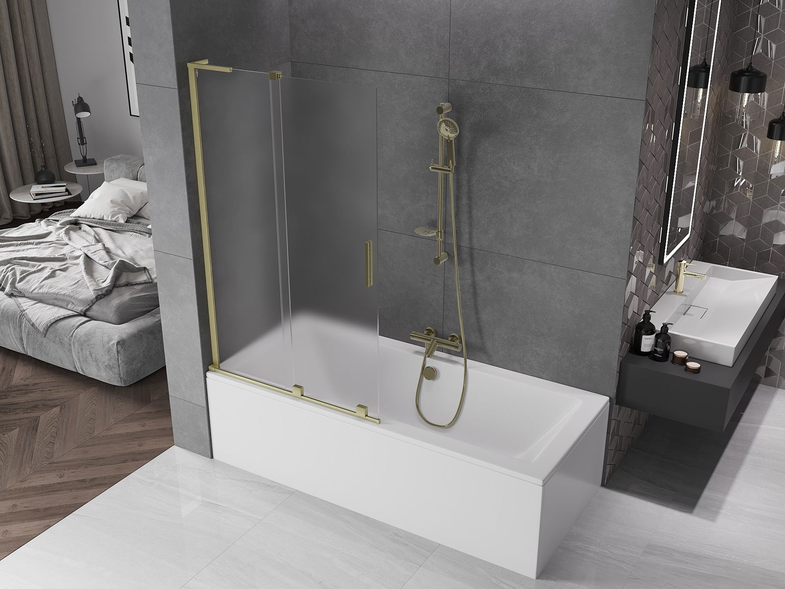 Mexen Velar L vanová zástěna 2-křídlová posuvná 100 x 150 cm, matná, zlatá kartáčovaná - 896-100-003-31-55