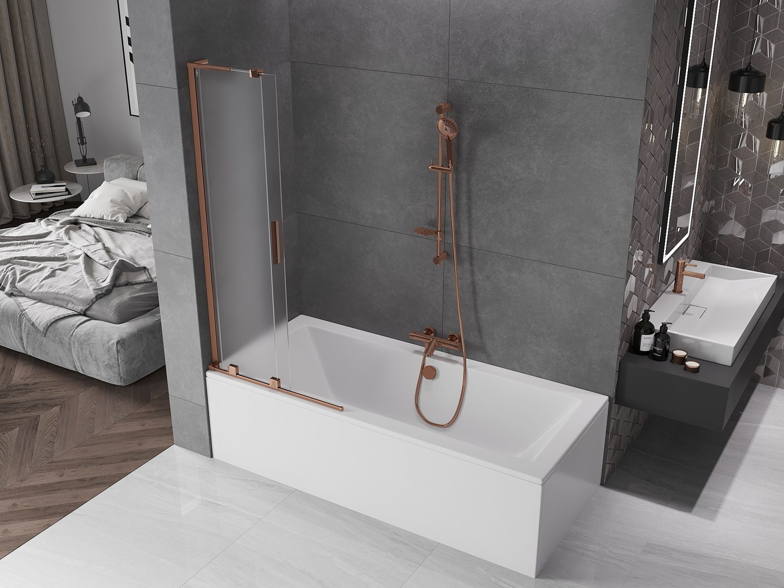 Mexen Velar L vanová zástěna 2-křídlová posuvná 80 x 150 cm, mat, růžové zlato - 896-080-003-31-60