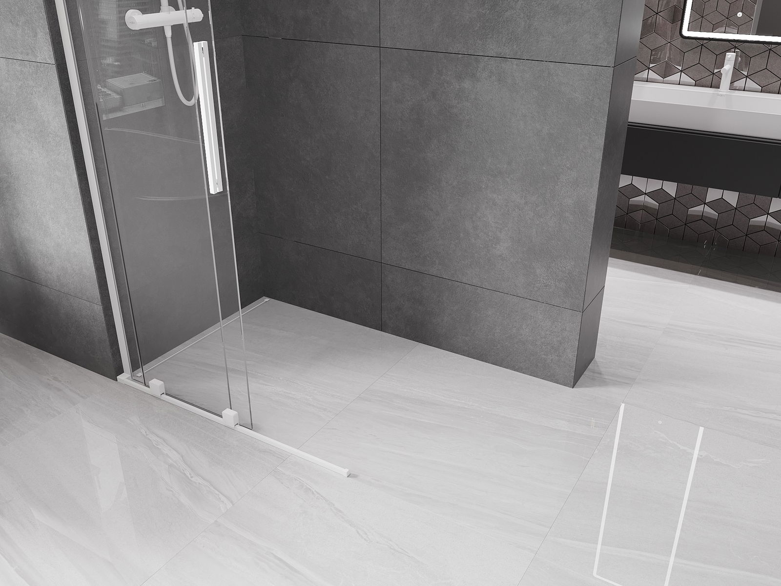 Mexen Velar L Sprchová příčka posuvná Walk-in 120 x 200 cm, transparentní 8 mm, bílá - 871-120-003-03-20