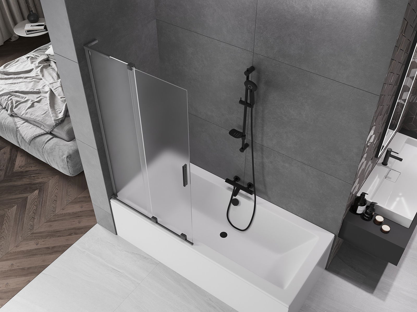 Mexen Velar L vanová paraván 2dílný posuvný 95 x 150 cm, matný, kartáčovaný gun grey - 896-095-003-31-66