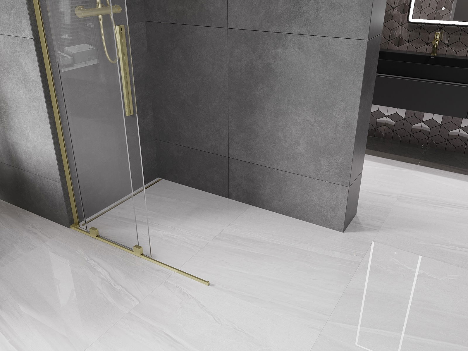 Mexen Velar L posuvná sprchová stěna Walk-in 90 x 200 cm, transparentní 8 mm, zlatá kartáčovaná - 871-090-003-03-55