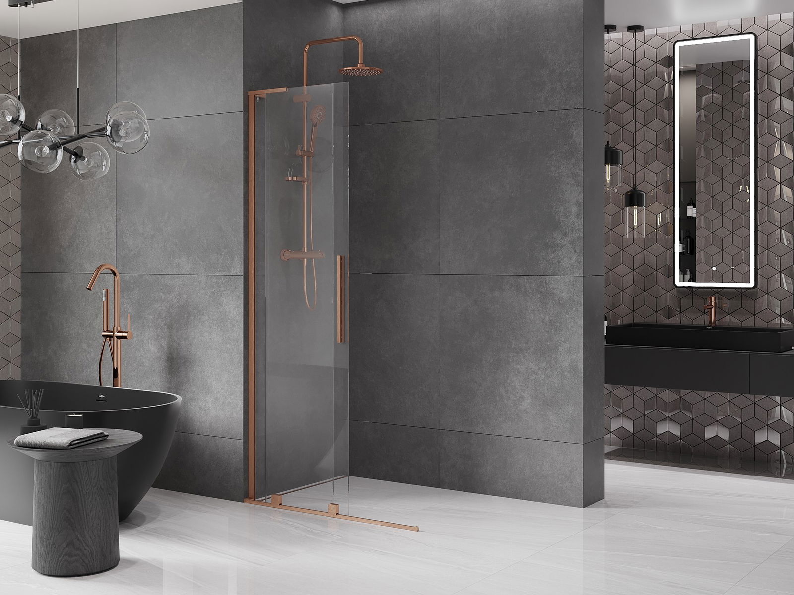 Mexen Velar L posuvná sprchová stěna Walk-in 90 x 200 cm, transparentní 8 mm, kartáčovaná měď - 871-090-003-03-65