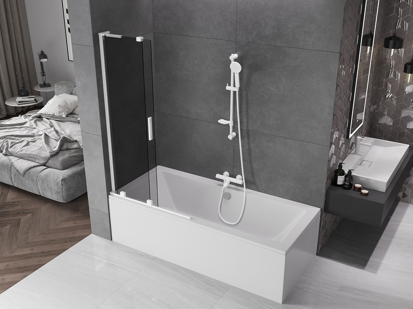 Mexen Velar L vana skládací 2-křídlový posuvný 95 x 150 cm, grafit, bílá - 896-095-003-41-20