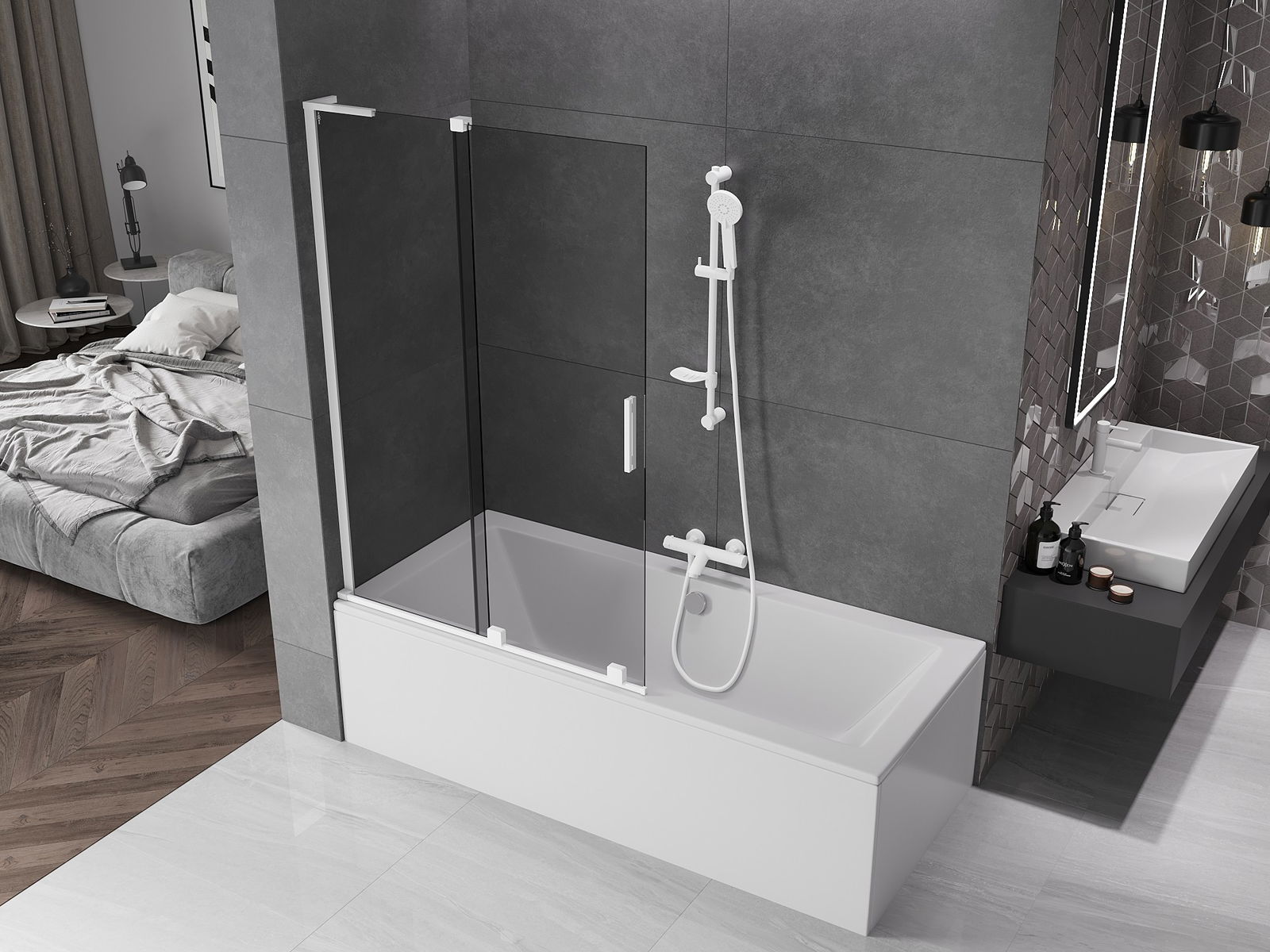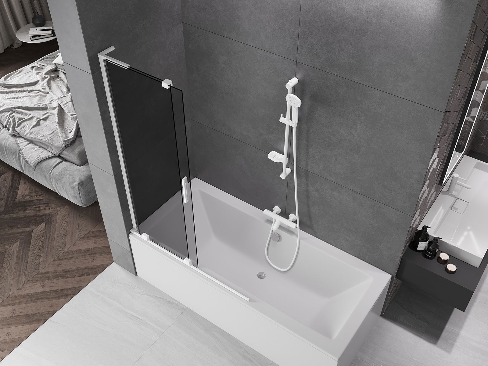 Mexen Velar L paraván na vanu 2dílný posuvný 110 x 150 cm, grafitový, bílý - 896-110-003-41-20