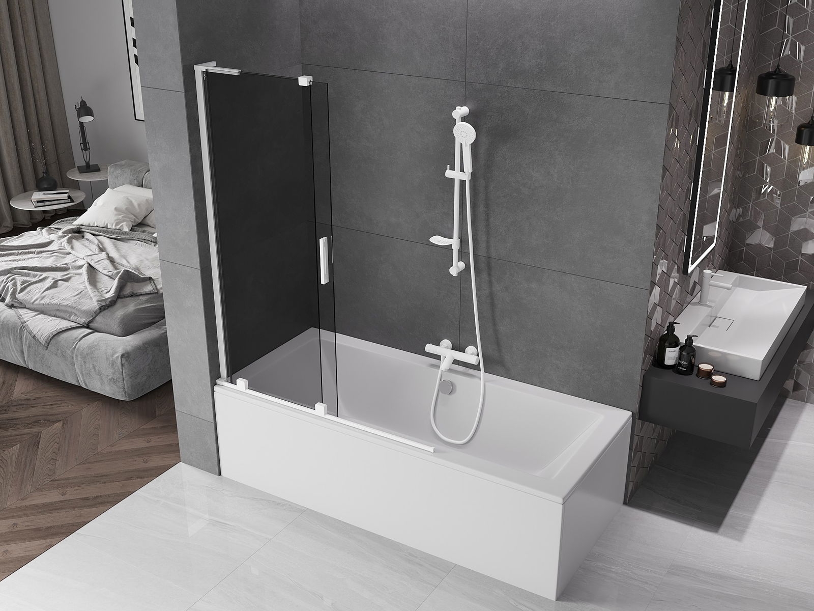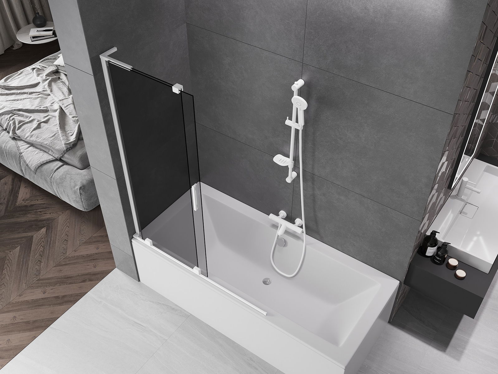 Mexen Velar L vanová zástěna 2křídlá posuvná 120 x 150 cm, grafit, bílá - 896-120-003-41-20