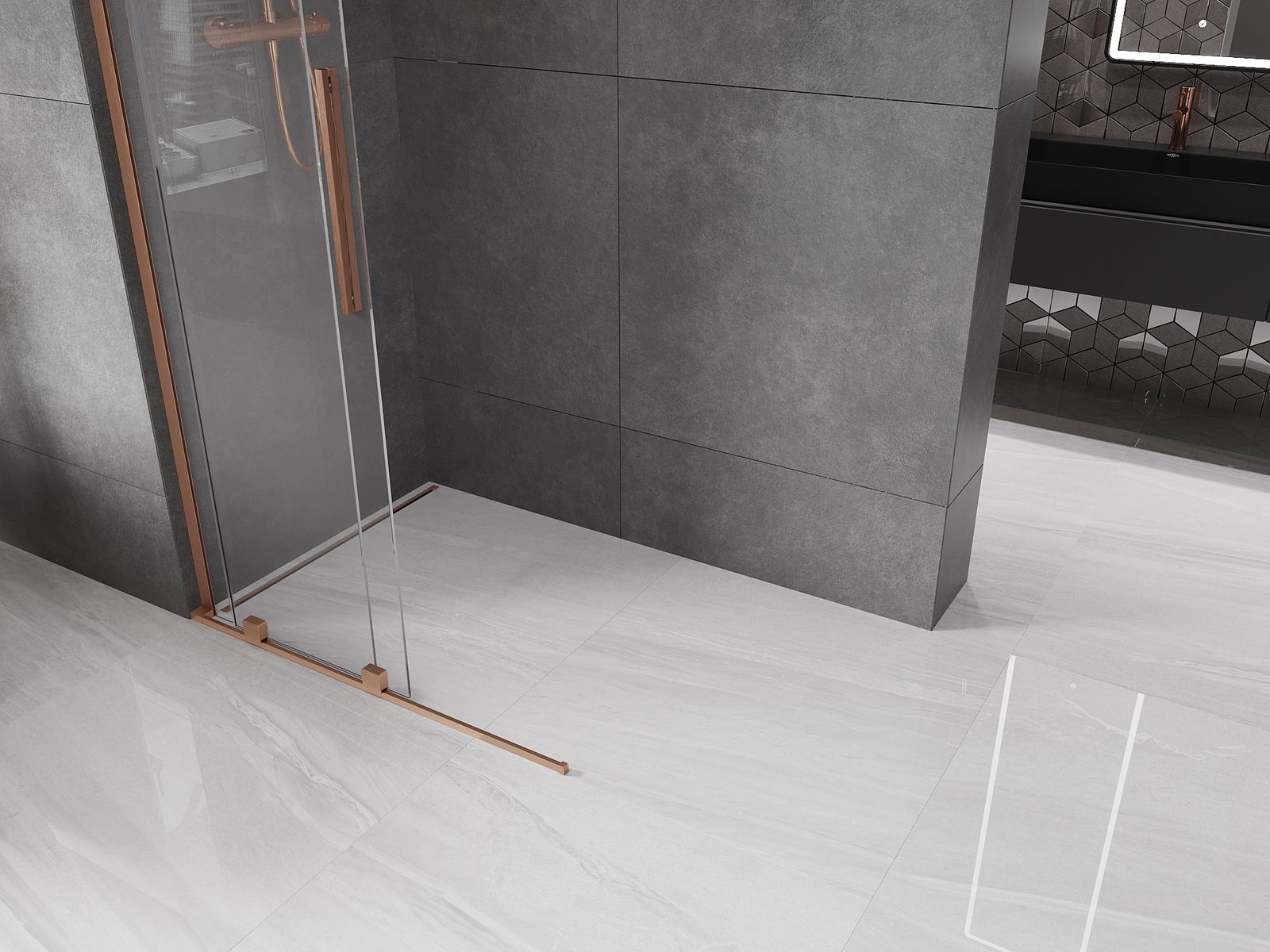 Mexen Velar L posuvná sprchová stěna Walk-in 110 x 200 cm, transparentní 8 mm, kartáčovaná měď - 871-110-003-03-65