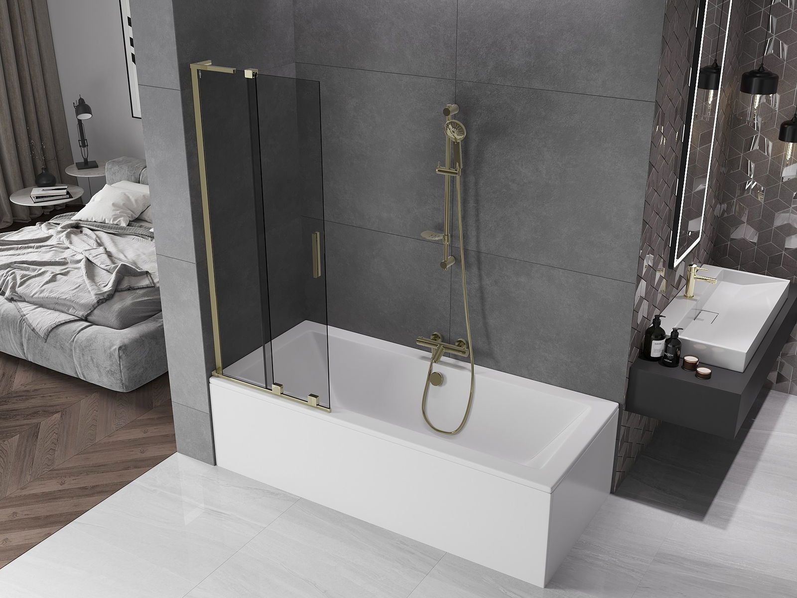 Mexen Velar L paravan na vanu 2-dveřový posuvný 75 x 150 cm, grafitový, zlatý - 896-075-003-41-50