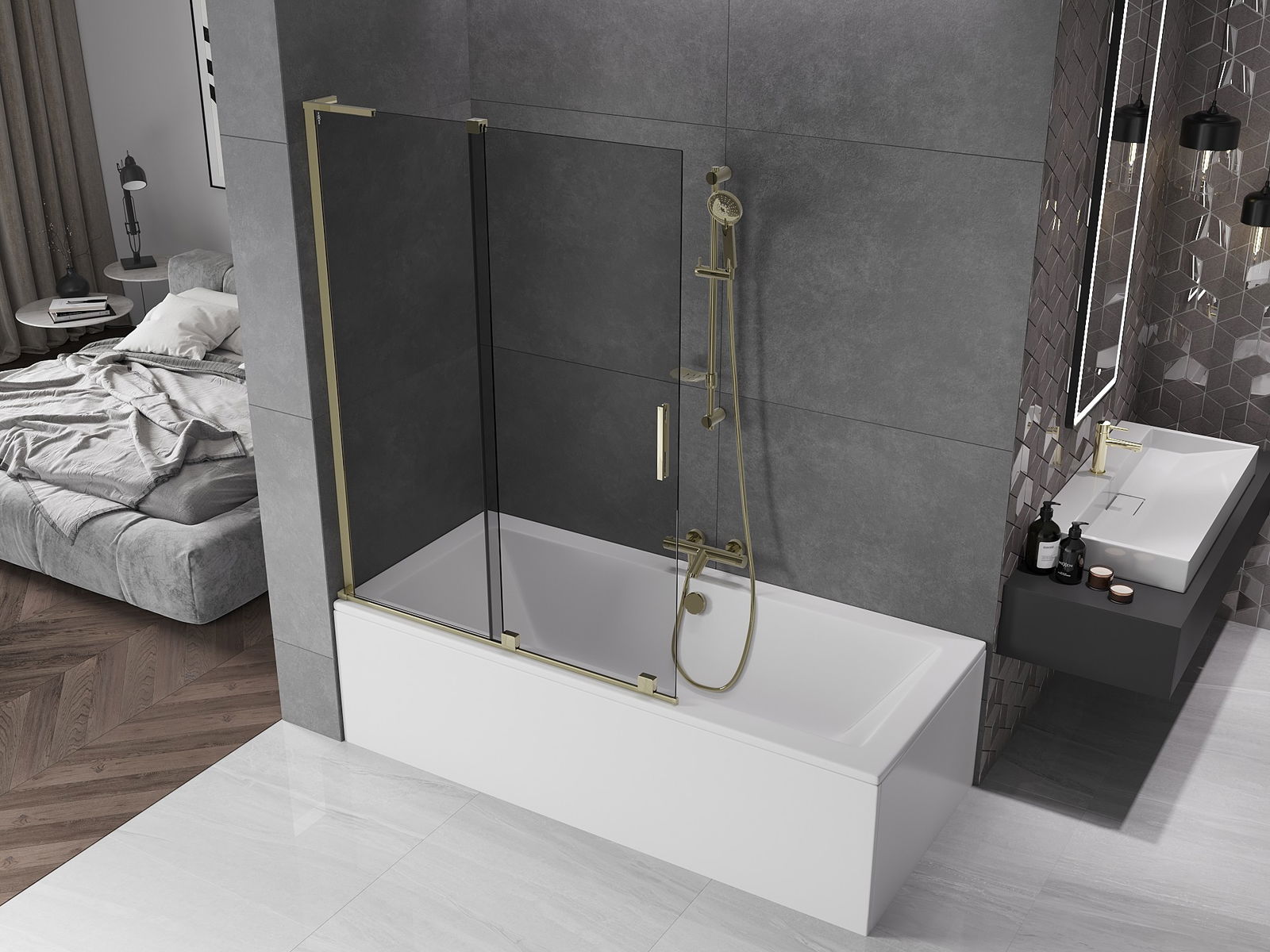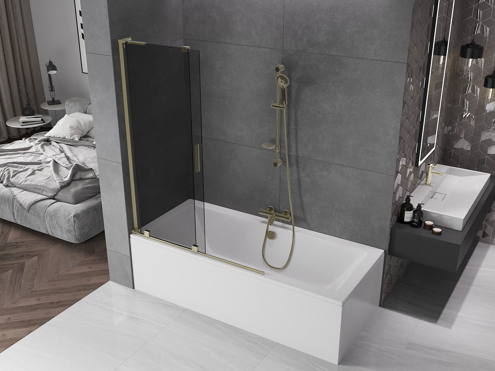 Mexen Velar L vanová zástěna 2dílná posuvná 120 x 150 cm, grafitová, zlatá - 896-120-003-41-50