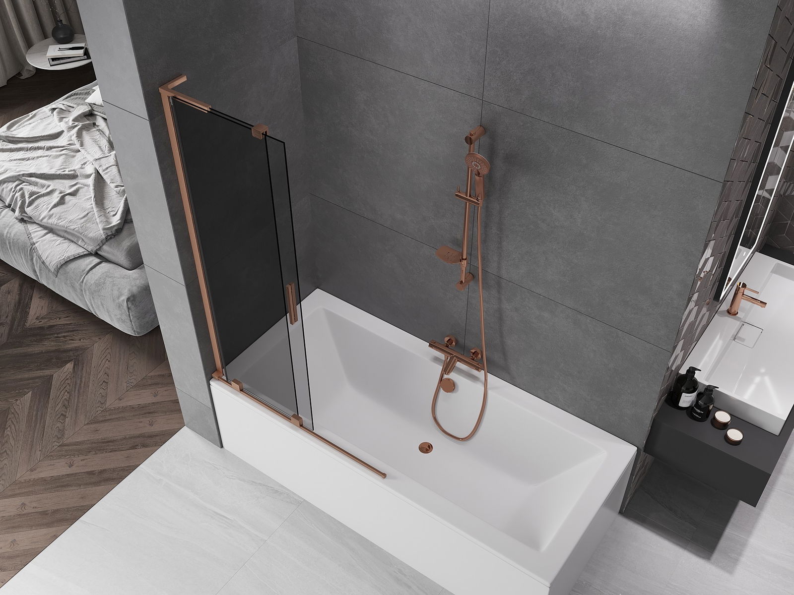 Mexen Velar L vanová zástěna posuvná dvoukřídlá 100 x 150 cm, grafit, kartáčovaná měď - 896-100-003-41-65
