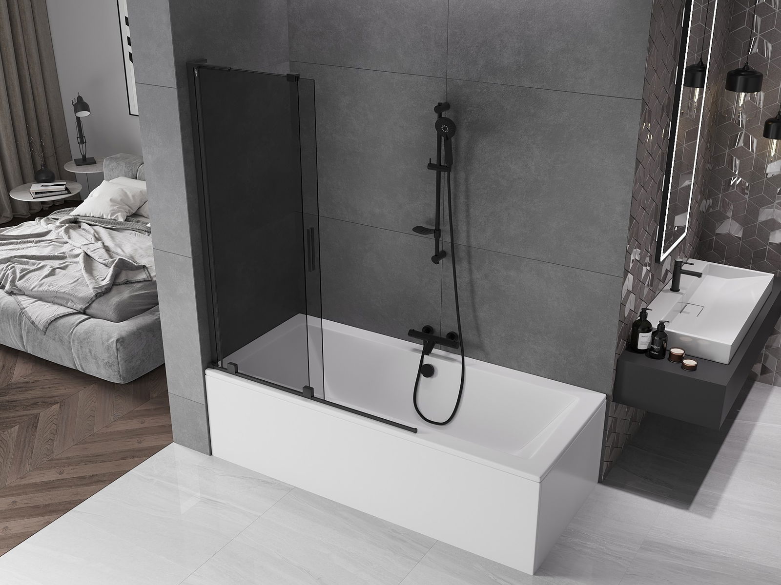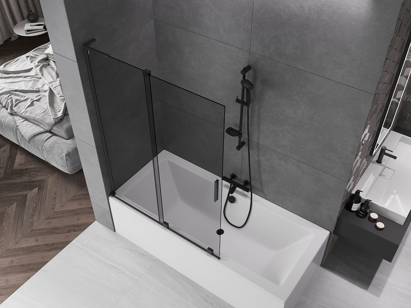 Mexen Velar L vanová zástěna dvoukřídlá posuvná 120 x 150 cm, grafit, černá - 896-120-003-41-70
