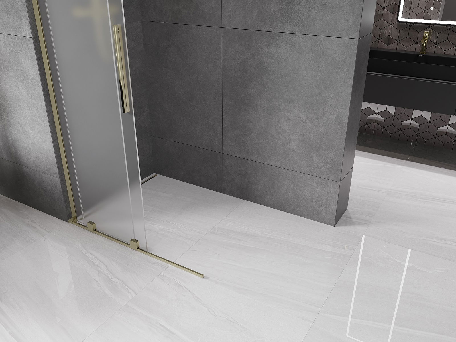 Mexen Velar L posuvná sprchová stěna Walk-in 100 x 200 cm, matné sklo 8 mm, zlatá - 871-100-003-33-50