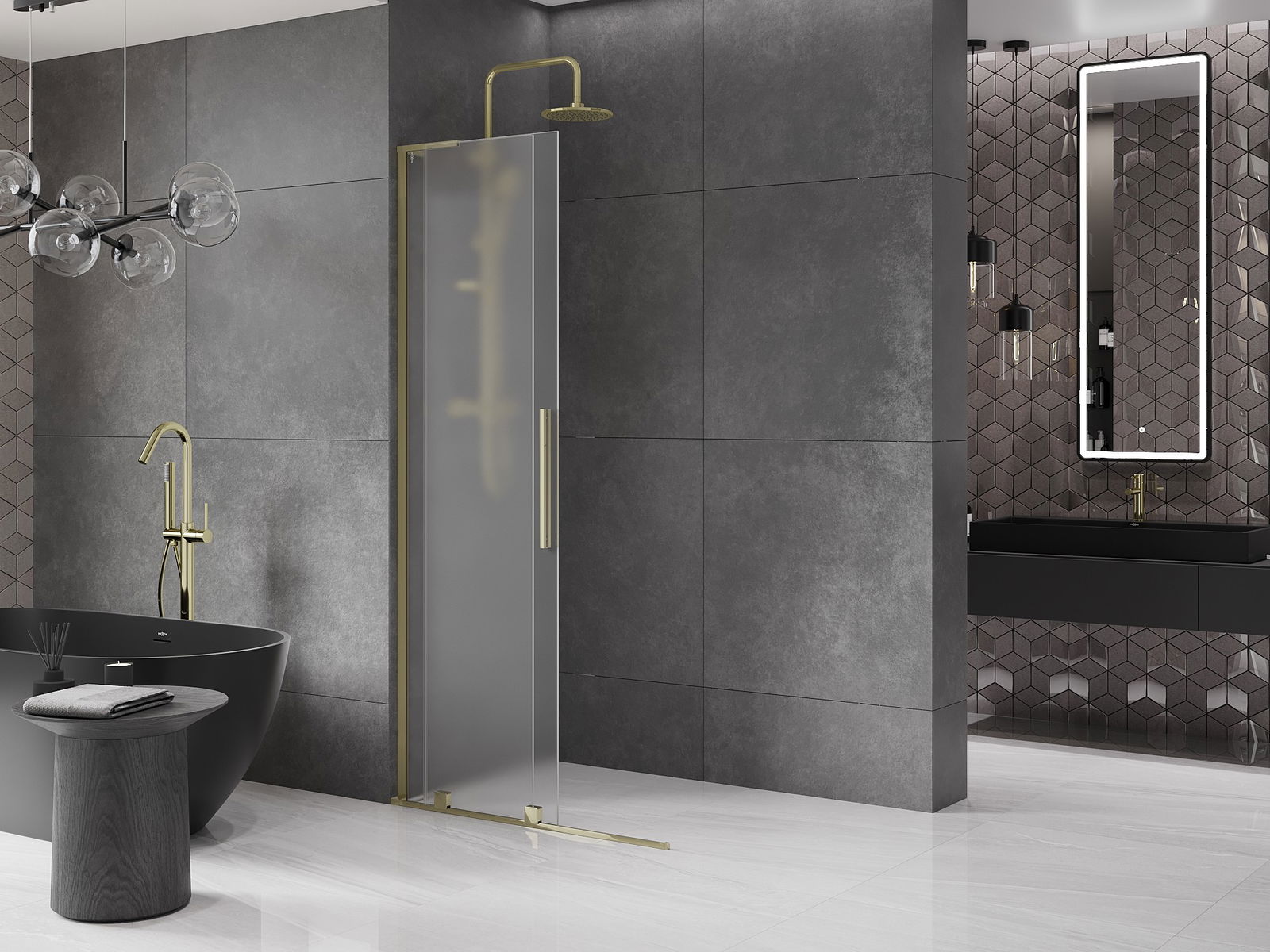 Mexen Velar L sprchová stěna posuvná Walk-in 120 x 200 cm, matné sklo 8 mm, zlatá - 871-120-003-33-50
