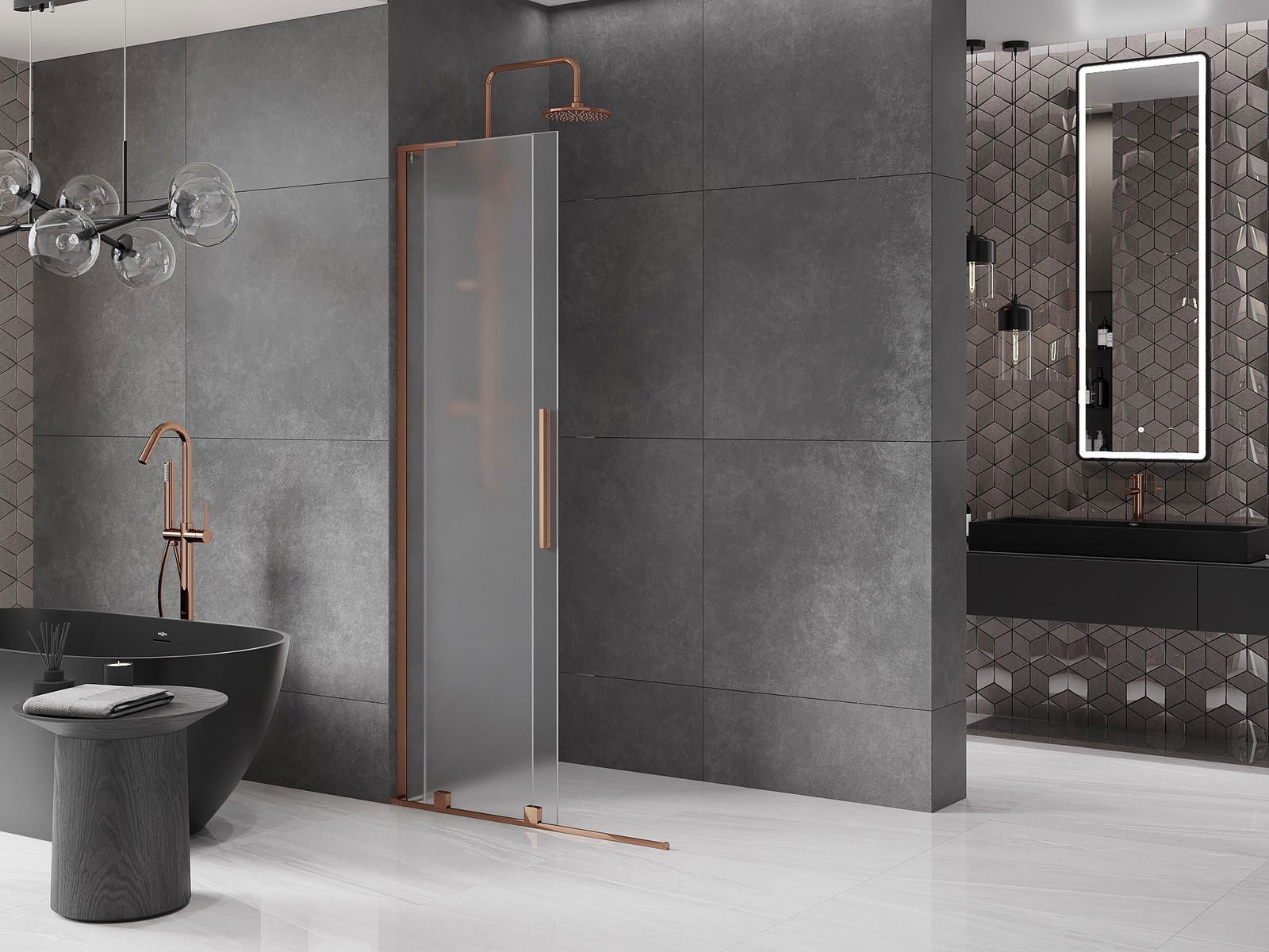 Mexen Velar L posuvná sprchová stěna Walk-in 100 x 200 cm, mléčné 8 mm, růžové zlato - 871-100-003-33-60