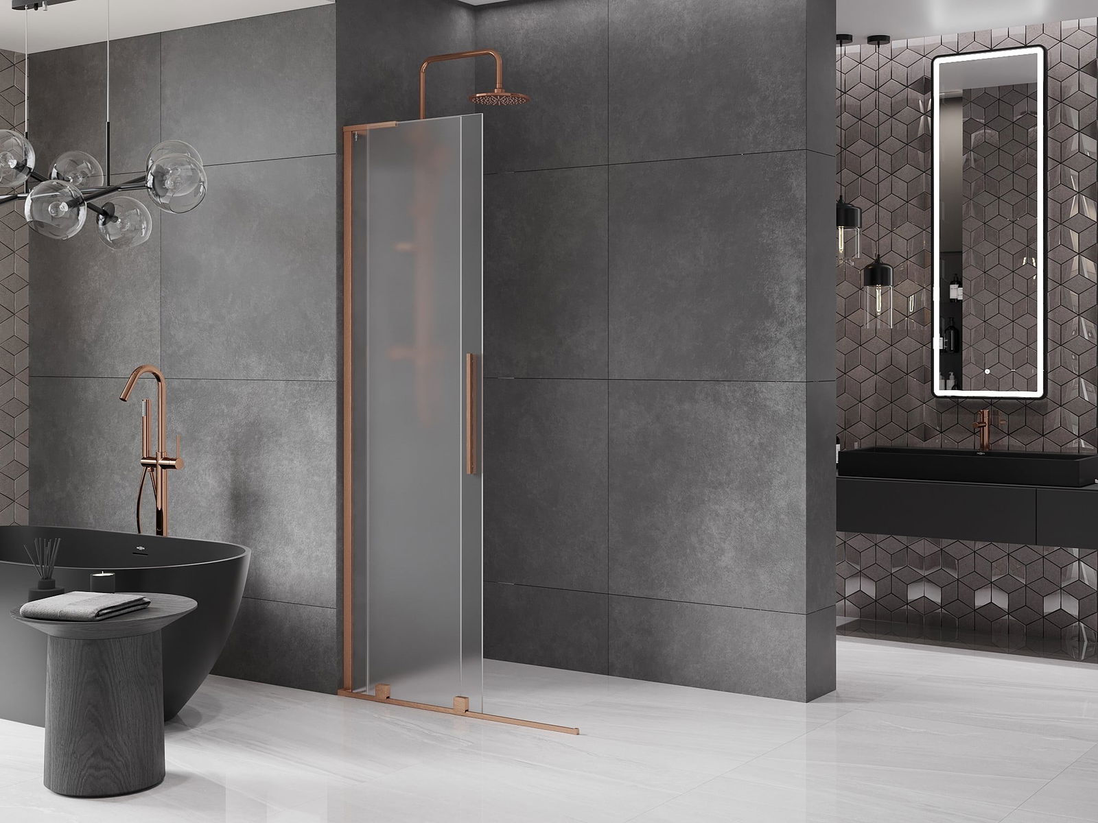 Mexen Velar L sprchová stěna posuvná Walk-in 110 x 200 cm, matné 8 mm, kartáčovaná měď - 871-110-003-33-65