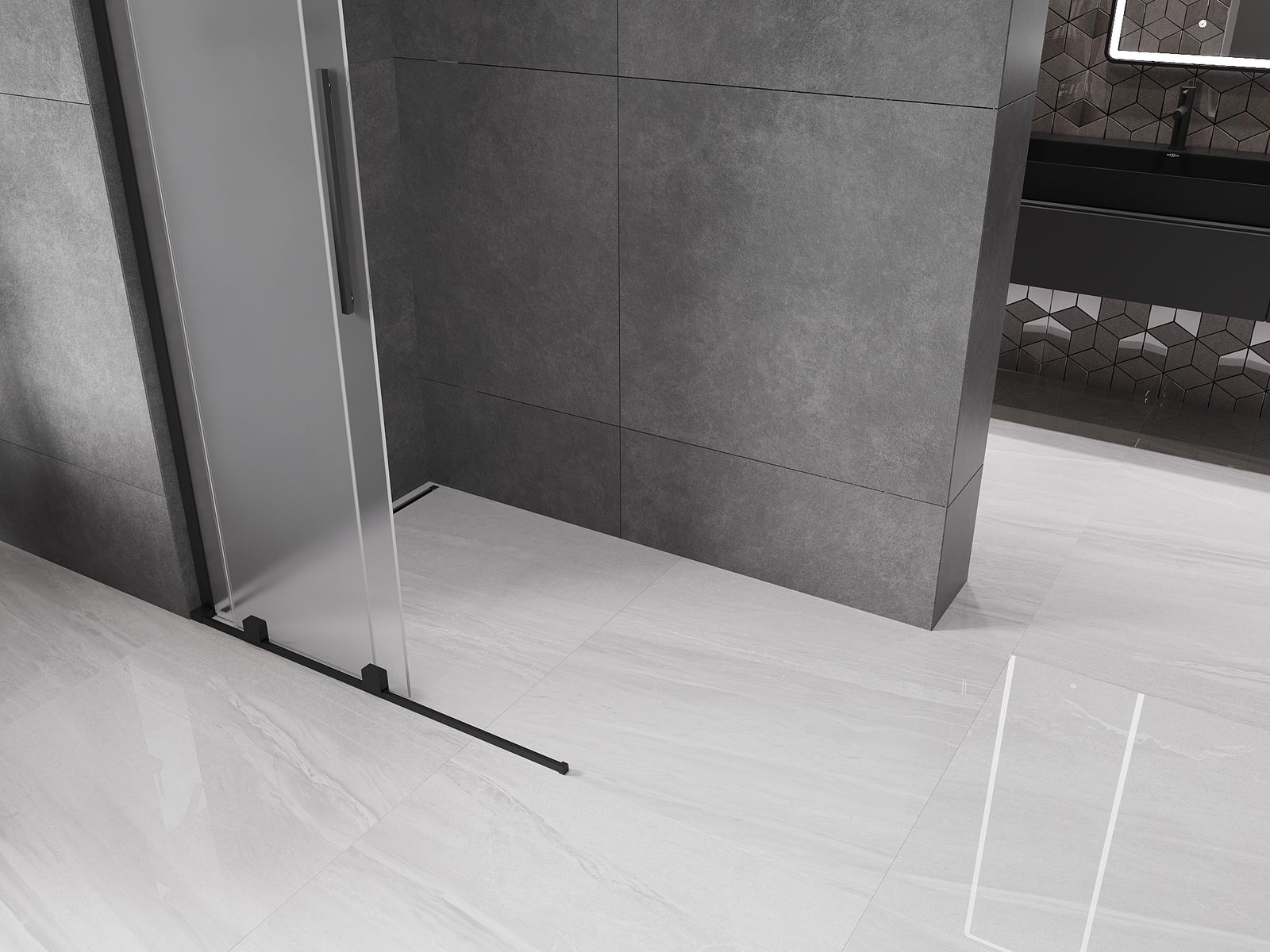 Mexen Velar L sprchová stěna posuvná Walk-in 100 x 200 cm, matné 8 mm, černá - 871-100-003-33-70