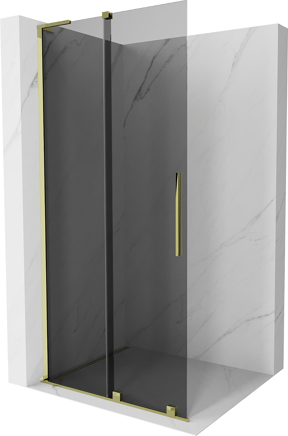 Mexen Velar L sprchová stěna posuvná Walk-in 100 x 200 cm, grafit 8 mm, zlatá - 871-100-003-43-50