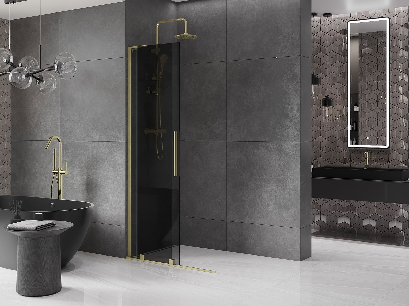 Mexen Velar L sprchová stěna rozkládací Walk-in 110 x 200 cm, grafit 8 mm, zlatá kartáčovaná - 871-110-003-43-55